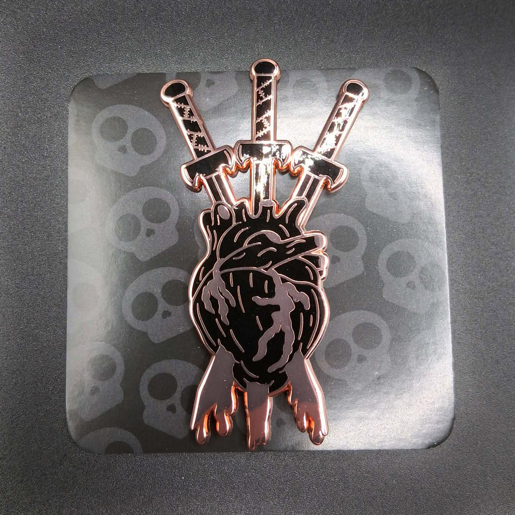 With the release of my Creepy Tarot 5th Anniversary reprint, I've made the fan-favorite Three of Swords into an enamel pin!