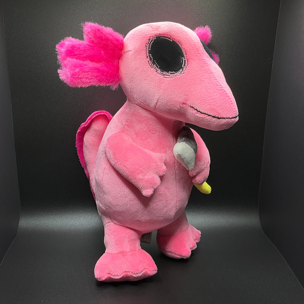 This version of Sid is the remade "correct" version, meaning the prototype approved version from my 2024 Kickstarter. He stuffed correctly, made from minky fabric instead of mochi, his hands lay flatter against his stomach, and his fingers/toes are a bit more defined.